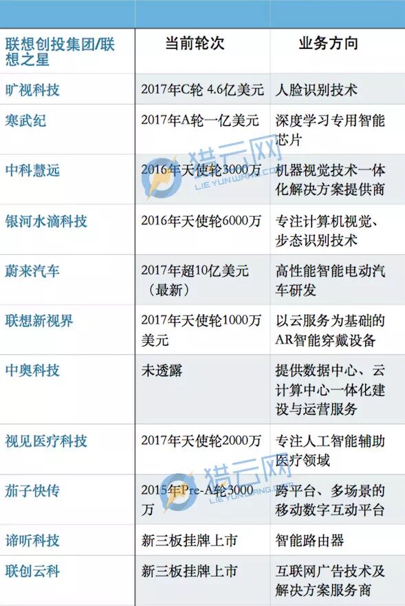 这些明星公司背后的投资者名单里,都能看到“联想创投”的名字。