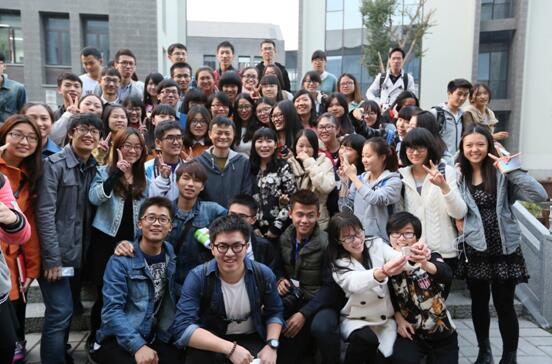 2014年11月21日,马云回母校仓前校区,同学弟学妹们合影