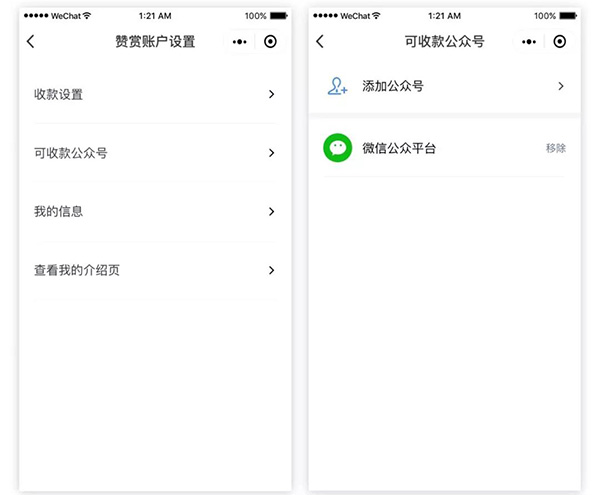 ❷接受邀请。作者在手机端接受公众号的邀请,进入小程序“赞赏账户”,创建并管理赞赏账户;