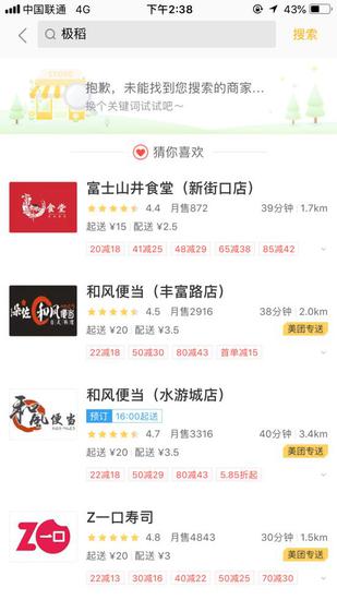 而输入完整名称,出现的则是其他有相同经营范围的店铺。